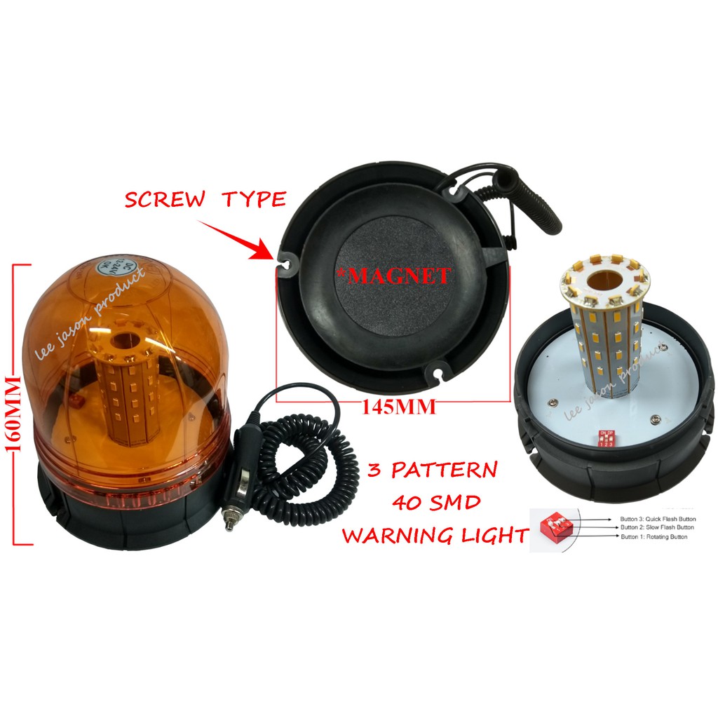 40SMD 12V-24V Magnetic SCREW 2 IN 1 Rotating Flash Beacon Strobe Warning Light Lamp Amber