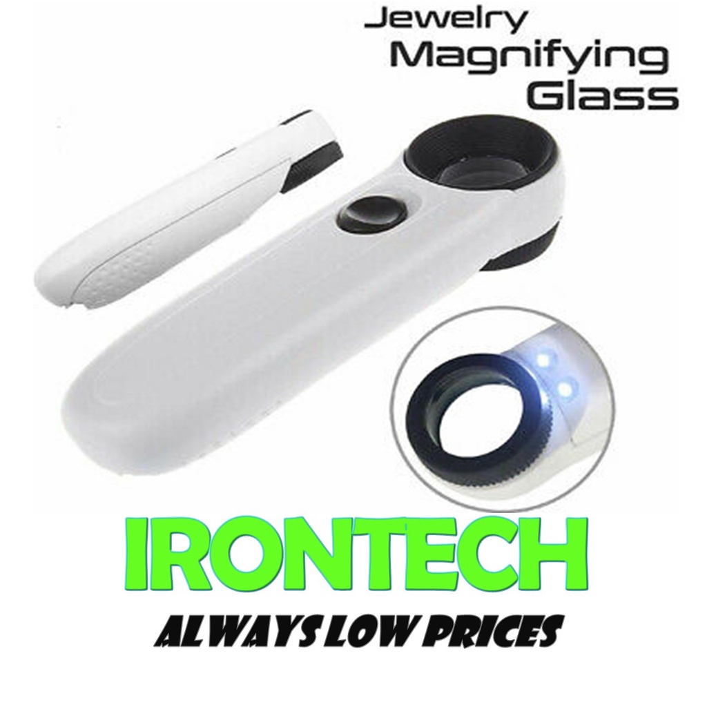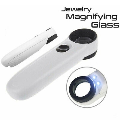 40X LED Hand Magnifier Magnifying Glass Lens White Light Reading Jewelry Loupe