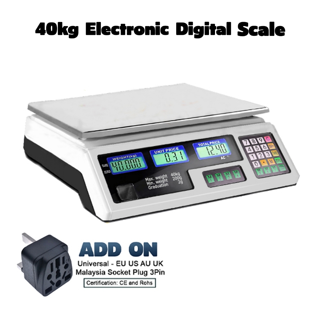 40kg Rechargeable Commercial Scale Electronic Digital Price Computing Weighting Scale Supermarket Penimbang Harga Pasar