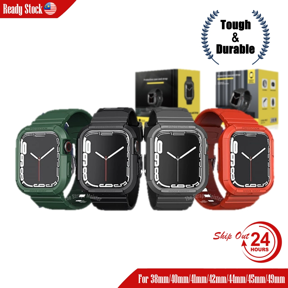 40mm 41mm & 44mm 45mm & 49mm Full Protection Silicone iWatch Casing with Straps For Series 4, 5, 6, 7, 8, 9