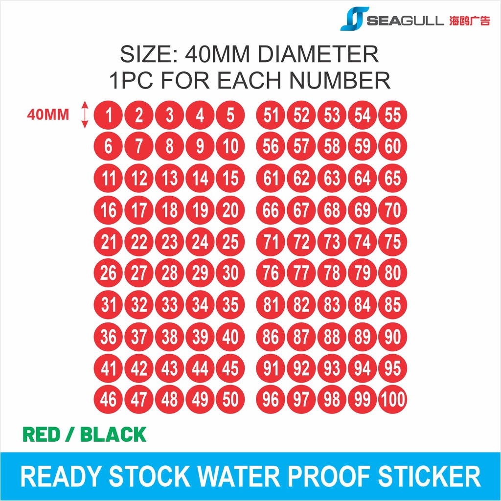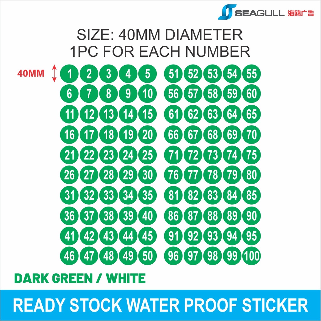 40mm Number Sticker Nombor Meja 123 4CM Sticker Nombor Table Number Pelekat Meja Label Water Proof 40mm Diameter 1-120