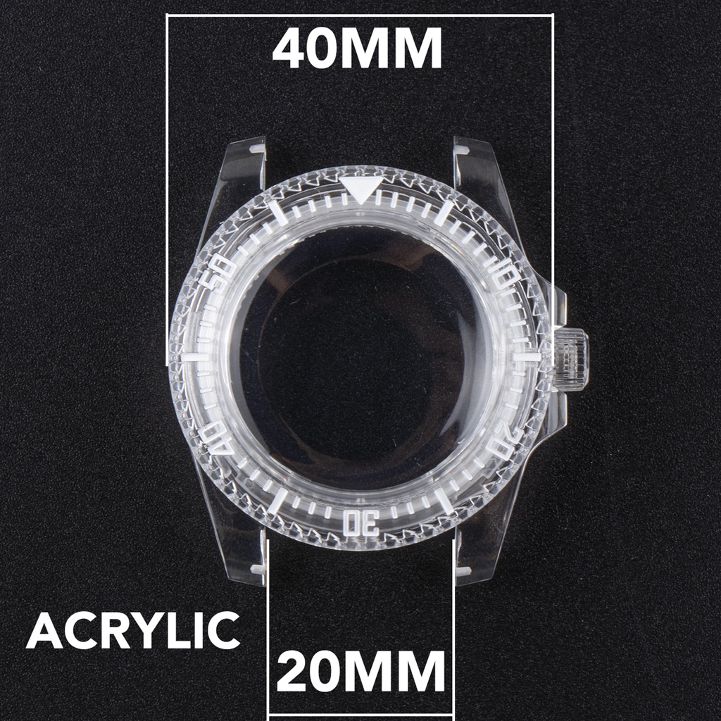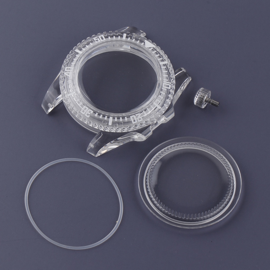 40mm SUB Plastic Transparent Watch Case Kits With Green Luminous for NH35A/NH35/NH36/4R/7S Watch Movement Repair Part