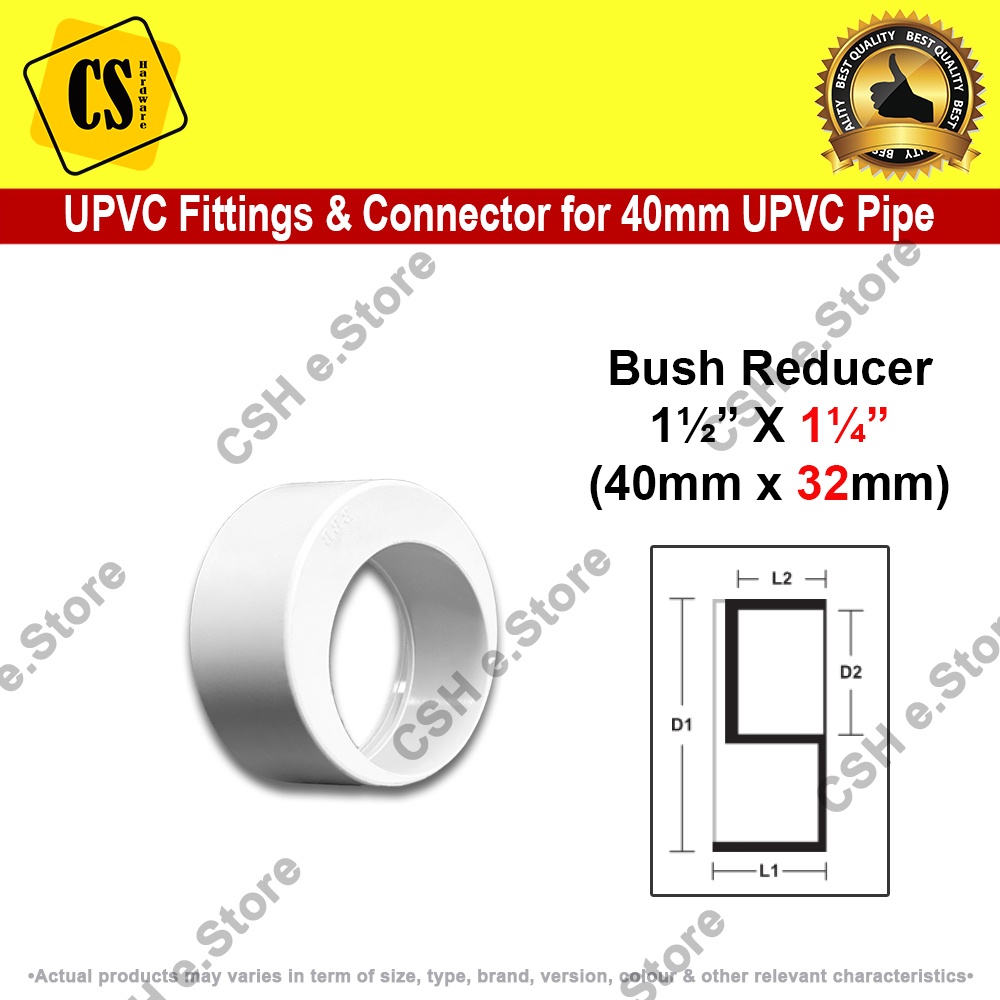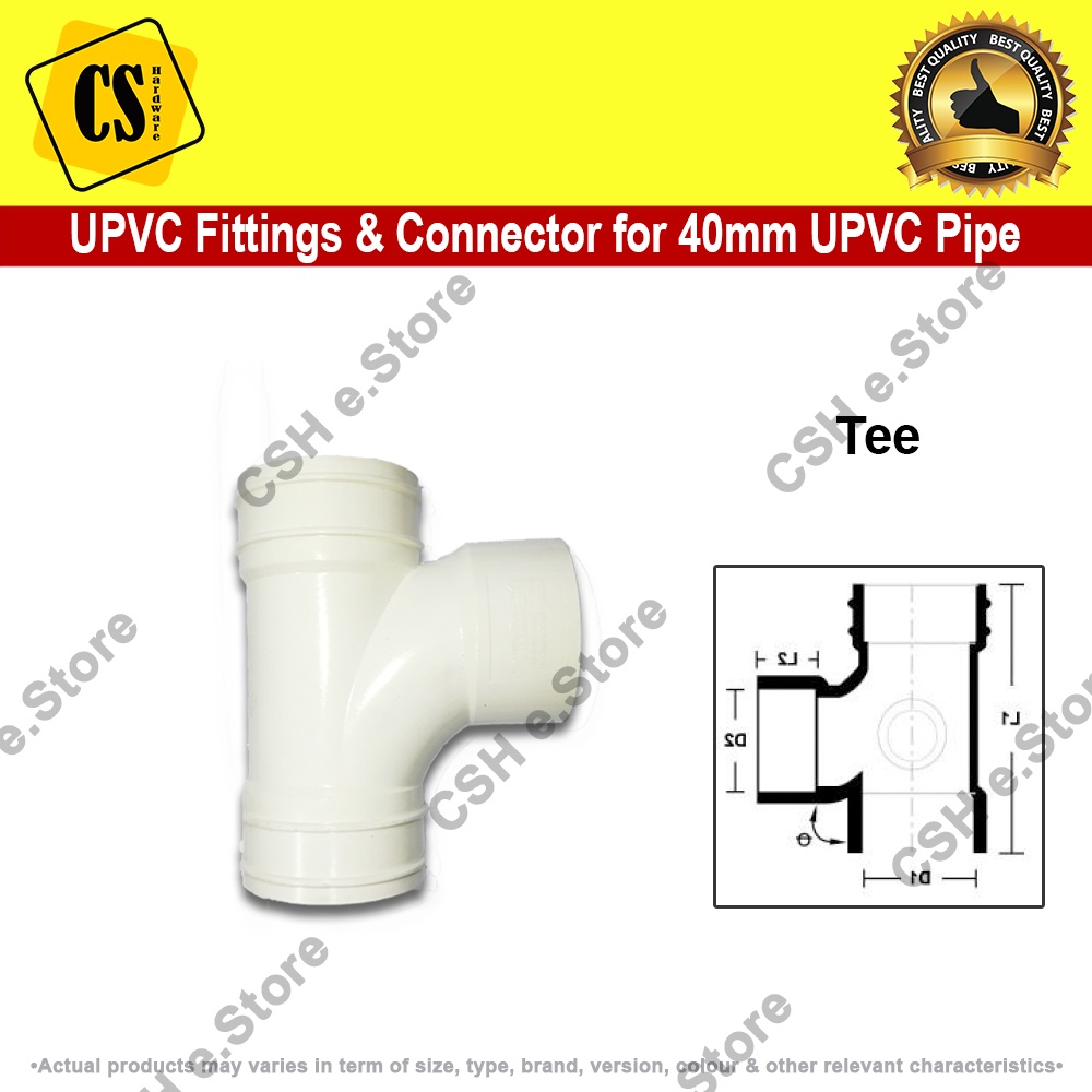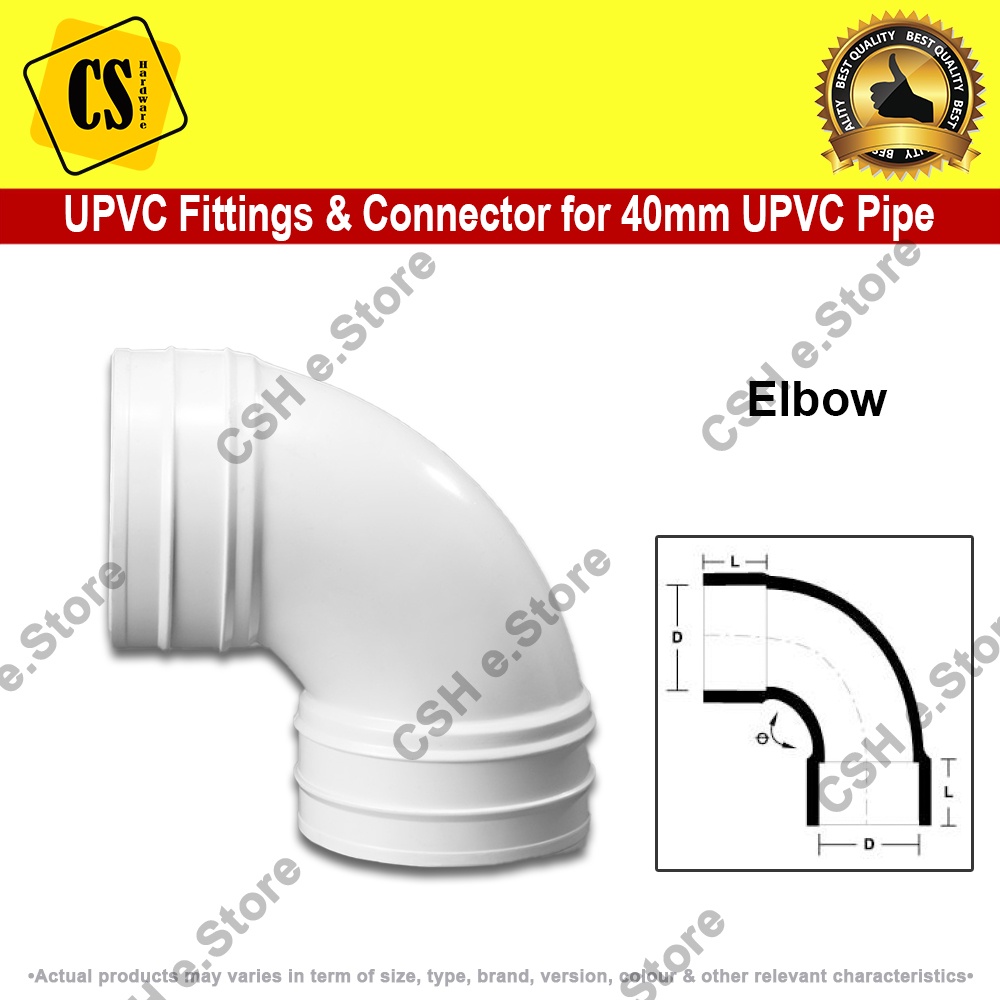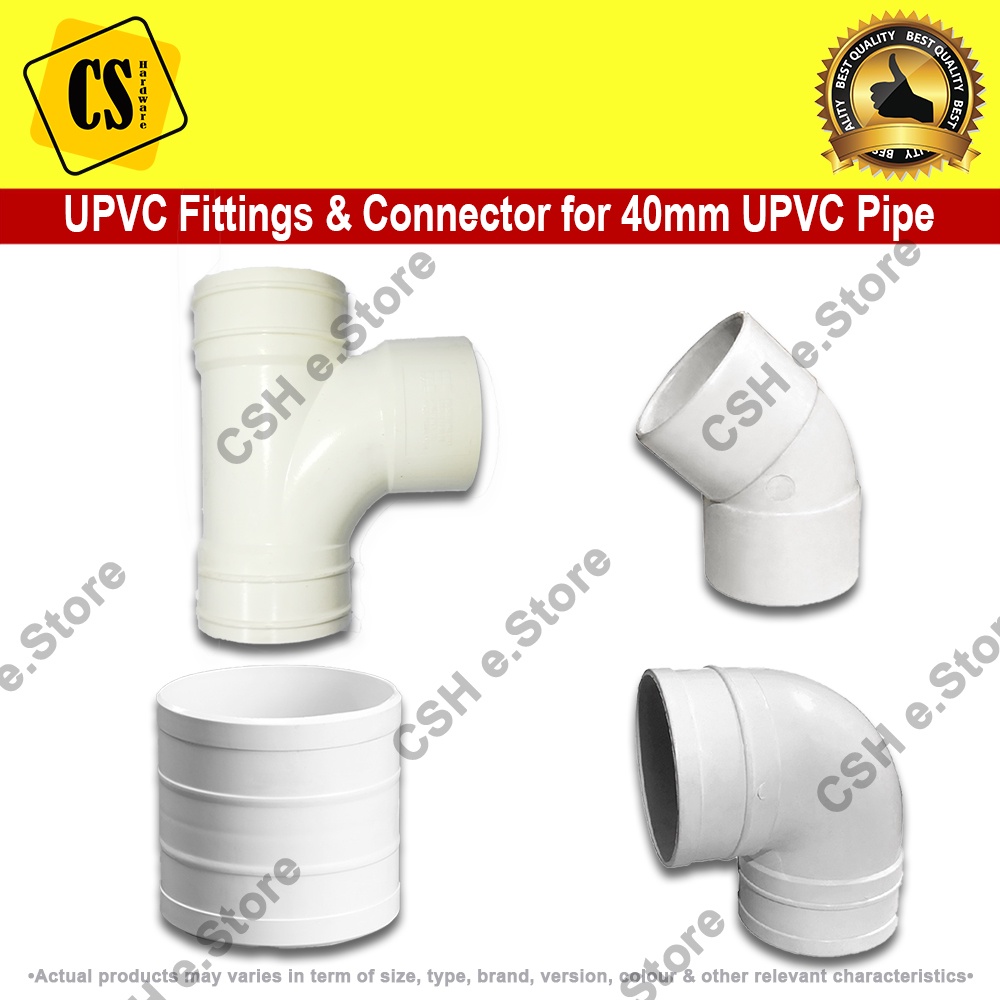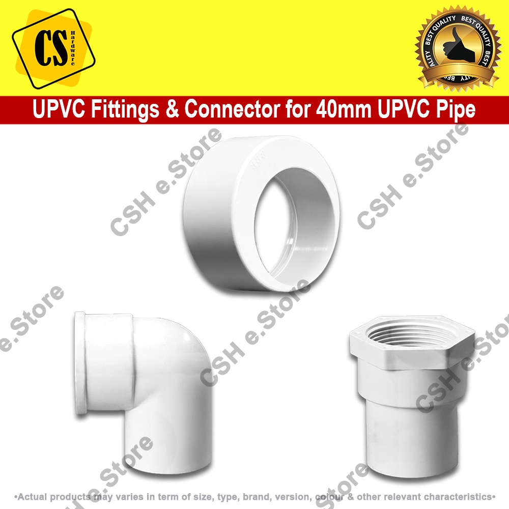 40mm UPVC Pipe Fitting Connector Sambungan Paip Putih Elbow Tee Socket Bush PT Elbow PT Socket for 40mm UPVC Pipe