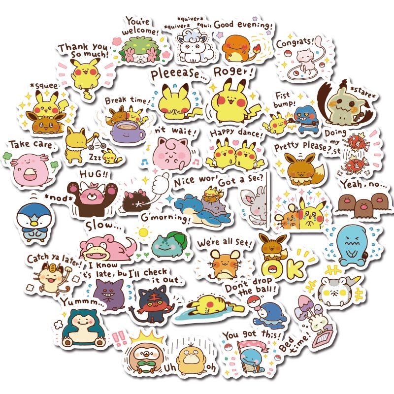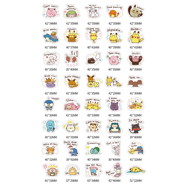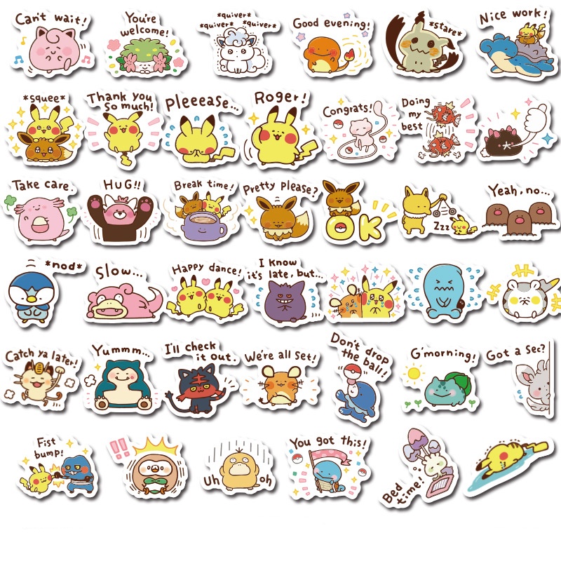 40pcs Cute Pokemon Cartoon Waterproof Scrapbook Stickers