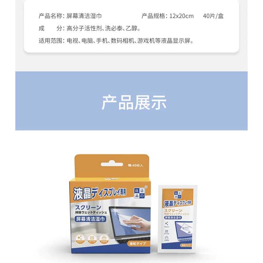 40pcs Individually Wrapped Screen Cleaning Wipes Alcohol-Free Wet Wipes Disposable Anti-Static Screen Cleaner Cloths