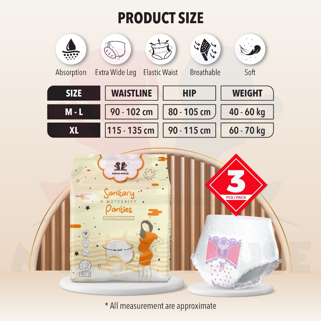(3 pcs/pack) Momo House Disposable Sanitary Pants Sanitary Pad Overnight Panties Period Panties