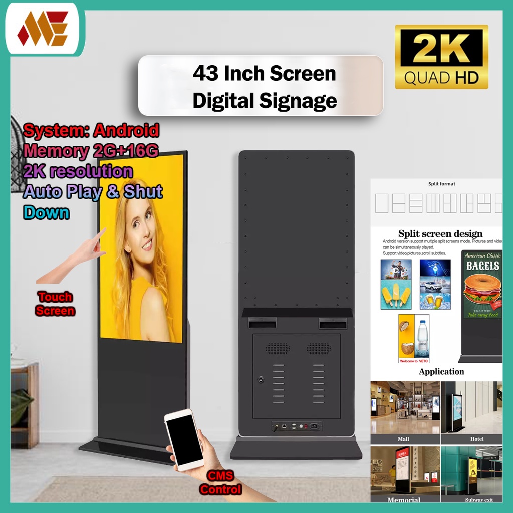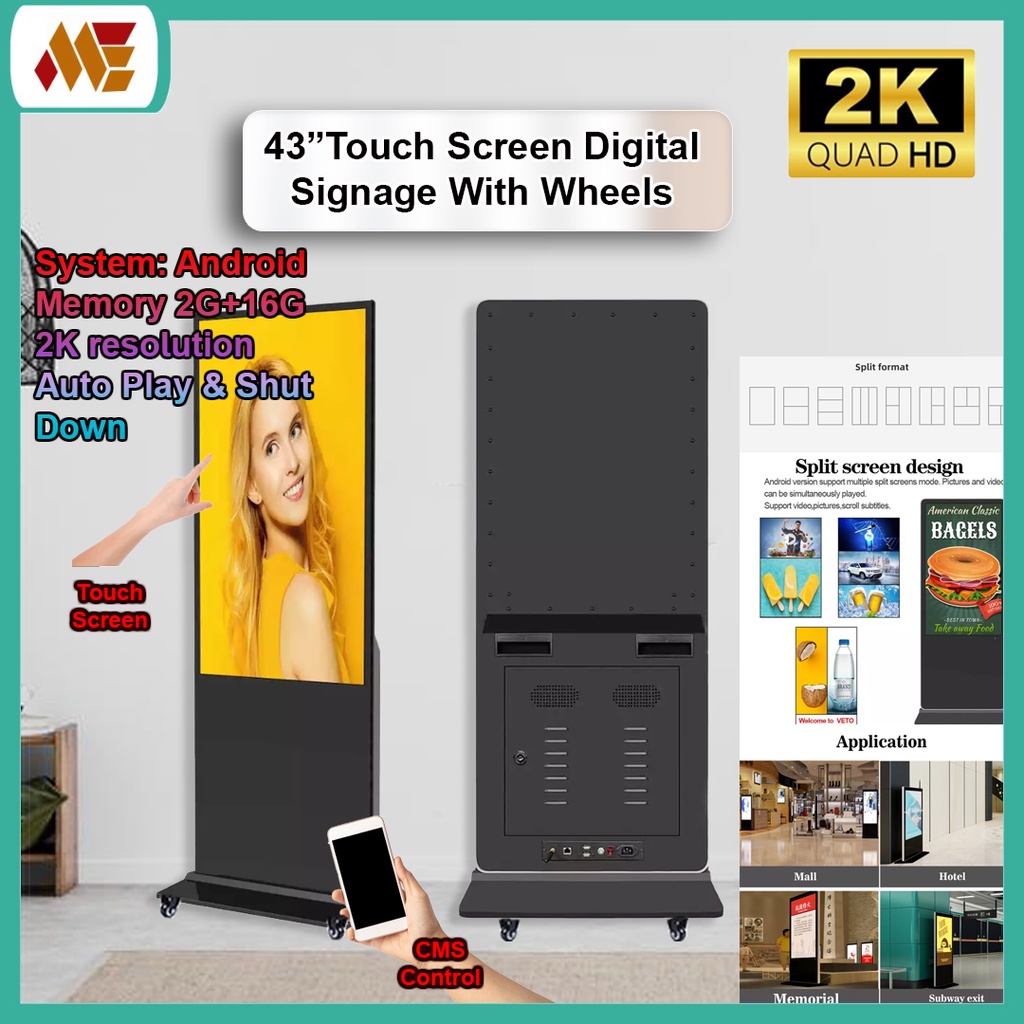 43 Inch Floor Standing Touch Screen Digital Screen Android Display for Advertisement/ LCD Kiosk Display Optional Wheels