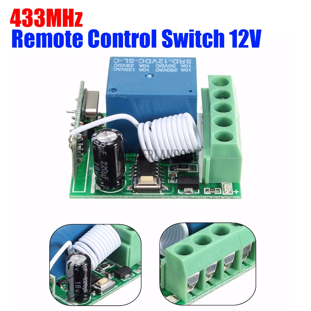 433MHz 1 Channel DC 12V 10A Wireless Relay RF Remote Control Switch Receiver