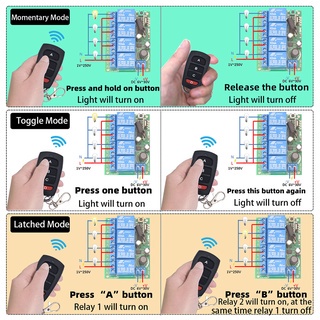 433Mhz Universal Wireless RF Remote Control Switch DC 12V 24V 4 Channel Relay Receiver and Transmitter for Garage Gate Motor Led
