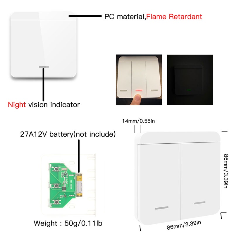 433mhz RF Wireless Switch 86 Size Wall Panel Remote Control Transmitter Work with Your 433mhz Rf Receiver
