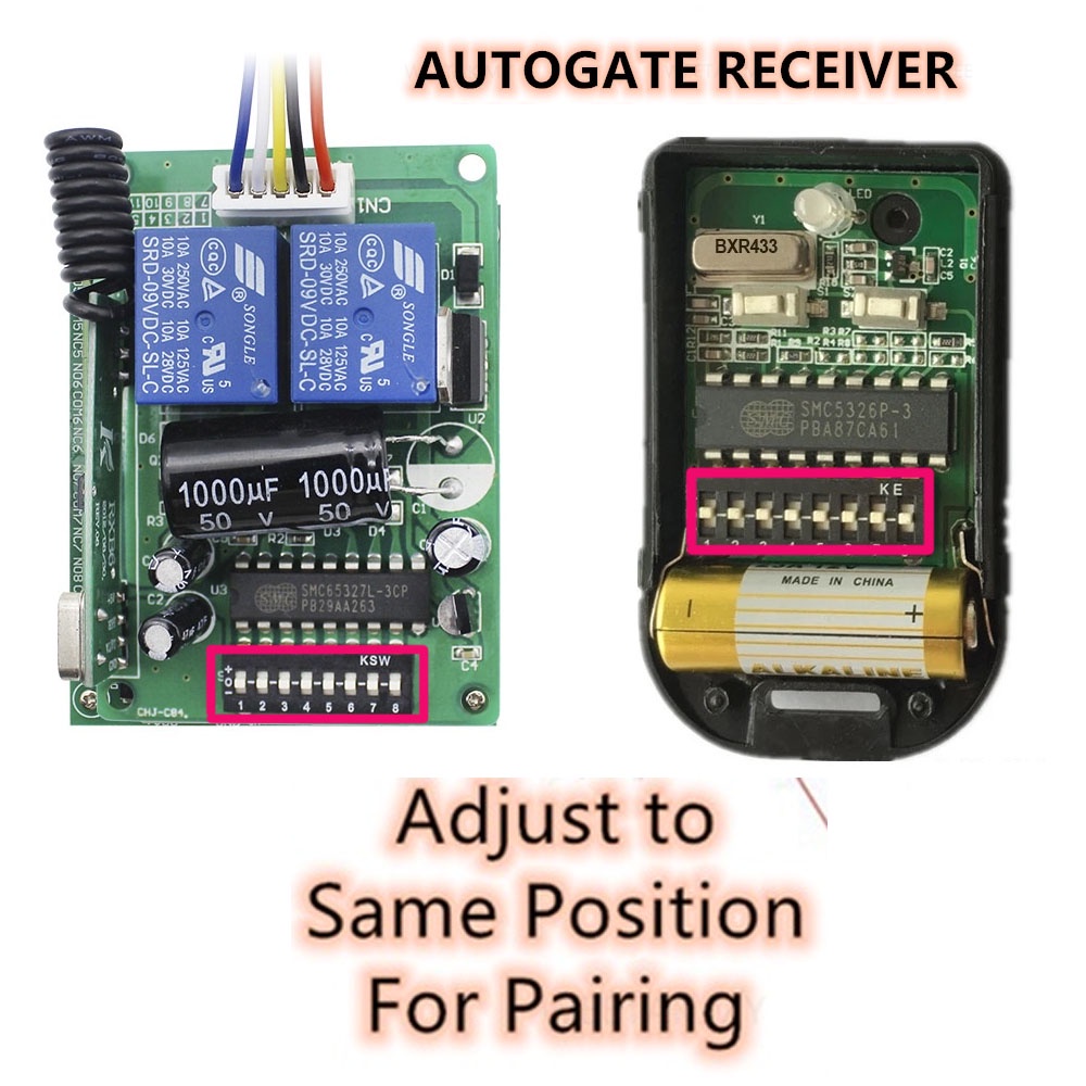 433mhz Wireless Remote Control Switch Auto Gate 2-Channel Transmitter Autogate Remote 8 Dip Receiver SMC5326