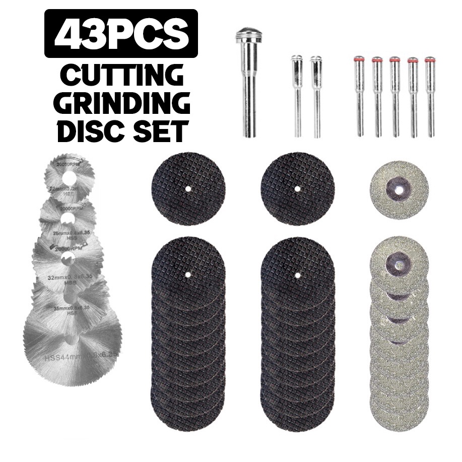 43PCS DIAMOND CUTTING DISC SET HSS MINI CIRCULAR SAW GRINDING DISC FOR ROTARY TOOL MINI ELECTRIC GRINDER TOOLS DIY