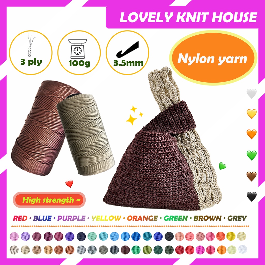 45 Color 3ply 100g+- Nylon Yarn Benang Nilon Nylon Yarn 100g+-/Roll