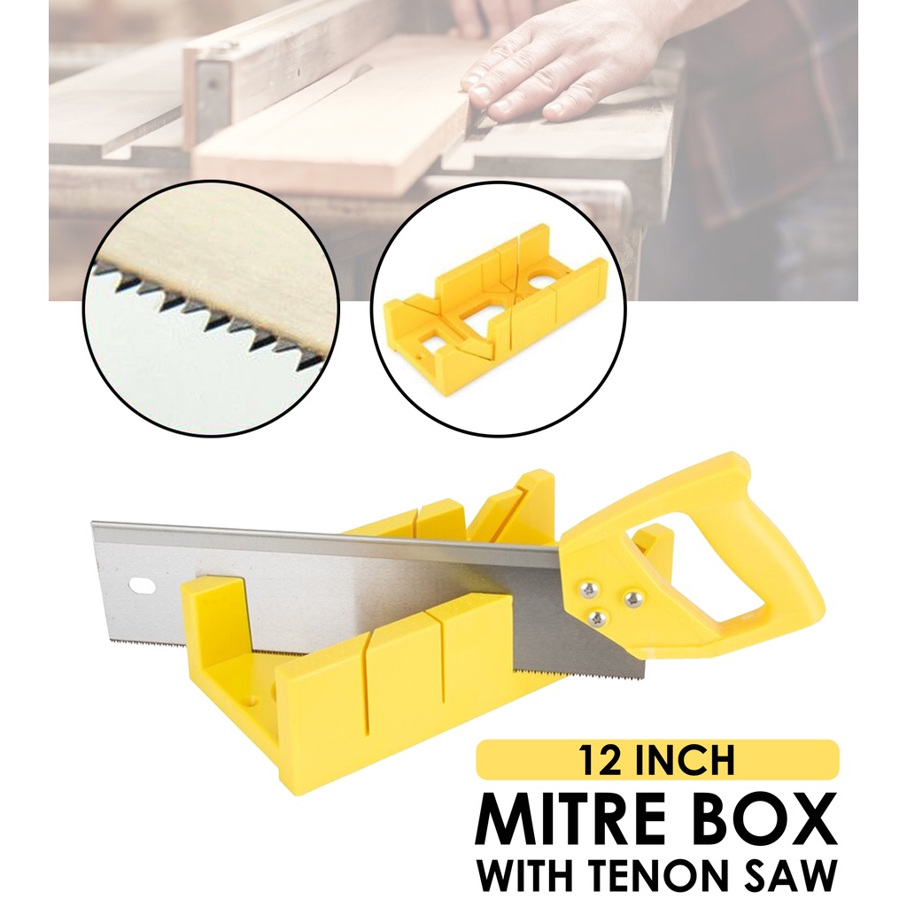 45 Degree 90 Degree Mitre Saw Box 300mm 12" Mitre Box With Tenon Saw Wainscoting Miter Storage Gergaji Kayu Plastik Wood