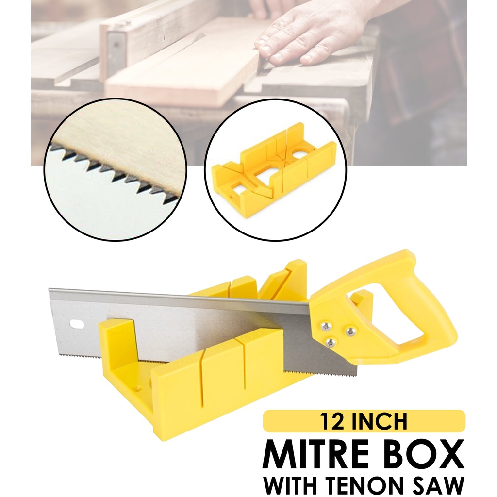 45 Degree 90 Degree Mitre Saw Box 300mm 12" Mitre Box With Yellow Tenon Saw Wainscoting Miter Storage Gergaji Tangan