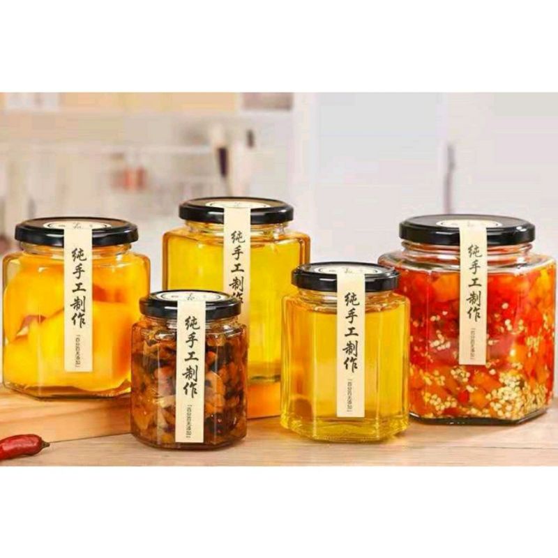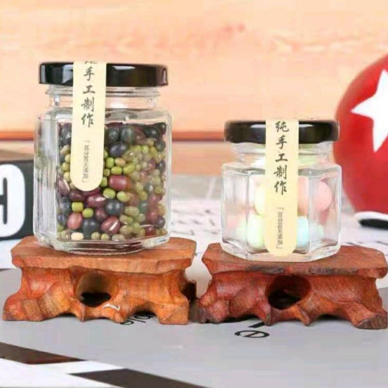 45ml 60ml 85ml 100ml Botol Kaca Hexagon Glass Jar With Gold / Silver / Black Aluminium Cap