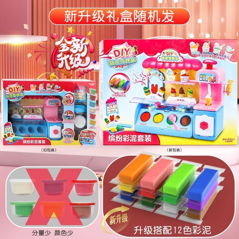 46Pcs/58Pcs/70Pcs Creative DIY Ice Cream Shop Toy Dough Pretend Play Set Clay Plasticine Ice Cream Machine with Light Music Popsicle Maker Boys Girls Kitchen Toy Set