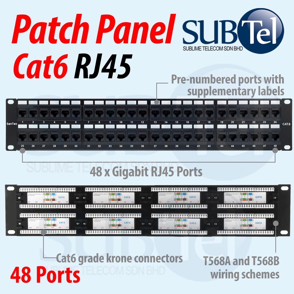 48-Port Cat6 RJ45 19" 2U Rack Mount Patch Panel Rackmount 19inch UTP 48 Port Cat5 Network Ethernet