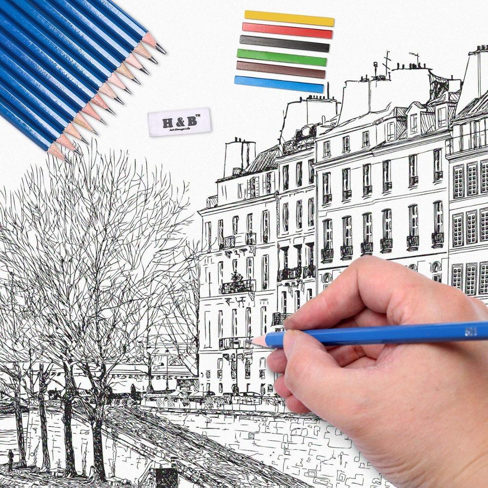 48 pcs Sketching Pensil Lukisan Profesional Lukisan Pensil Kit Set Pensil Kayu untuk Pelajar Seni Sekolah Pelajar