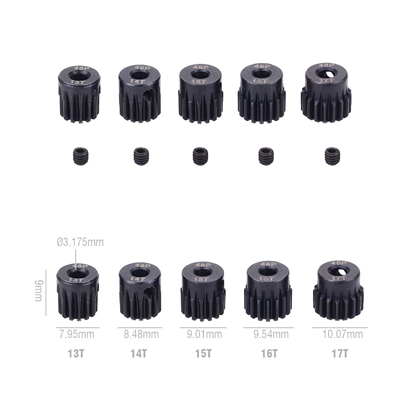48DP 3.175mm 16T 17t 18T 19T 20T 22T 24T 25T Black steel metal Pinion Motor Gear For 1/10 Rc Model Car Motor