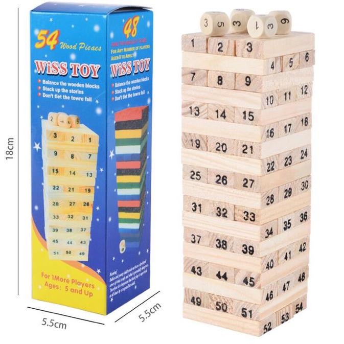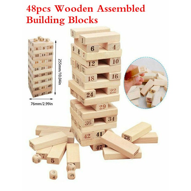 48pcs Wooden Stacko Block Bricks Tumbling Tower Classic Stacking Game Toys for Kids