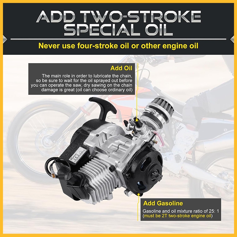 49CC two-stroke engine motor pocket bike two-stroke pocket bike pull start engine with carburetor