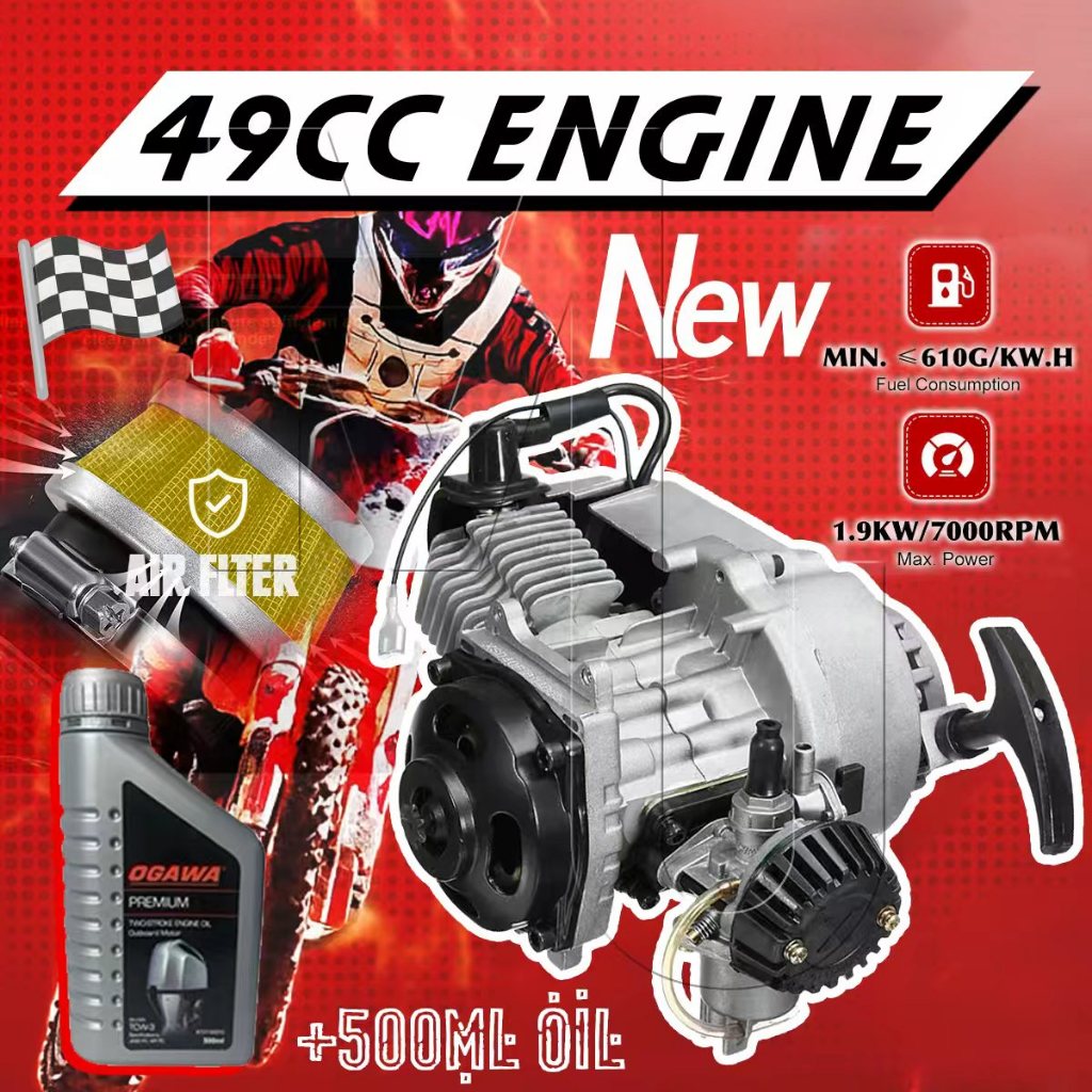 49cc 2 Stroke Enjin Mini Pocket Bike Scooter Engine Mototcycle Complete Engine Motor With Air Filter Carburetor Bike Mini Dirt Atv Quad
