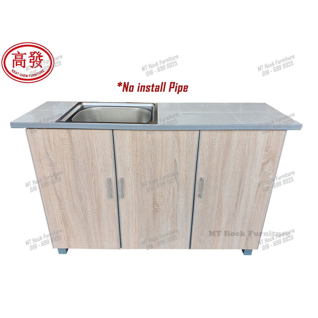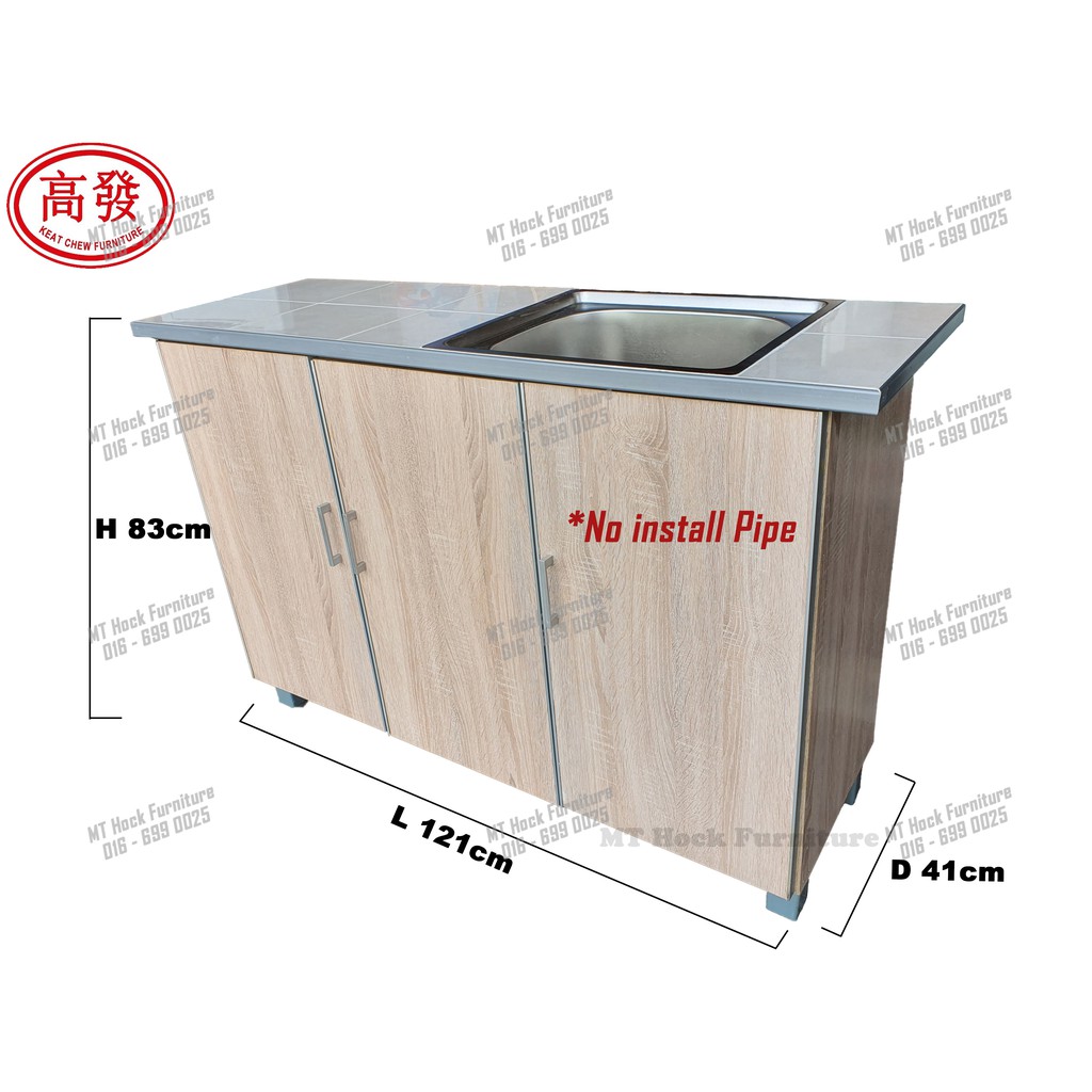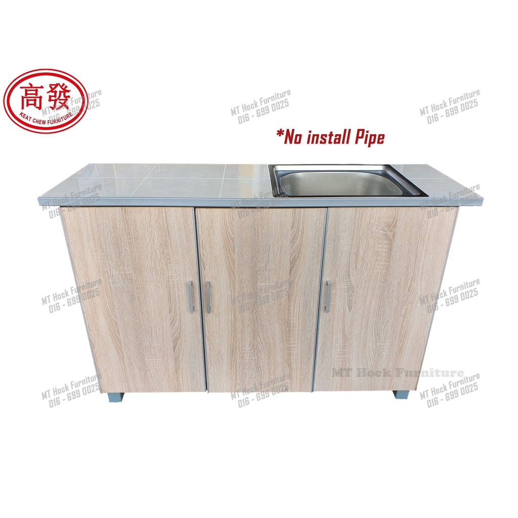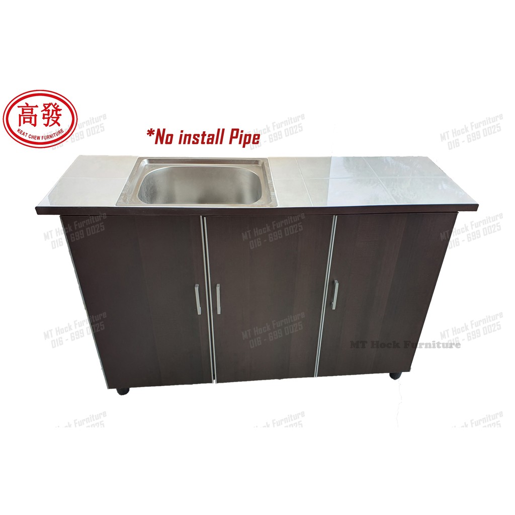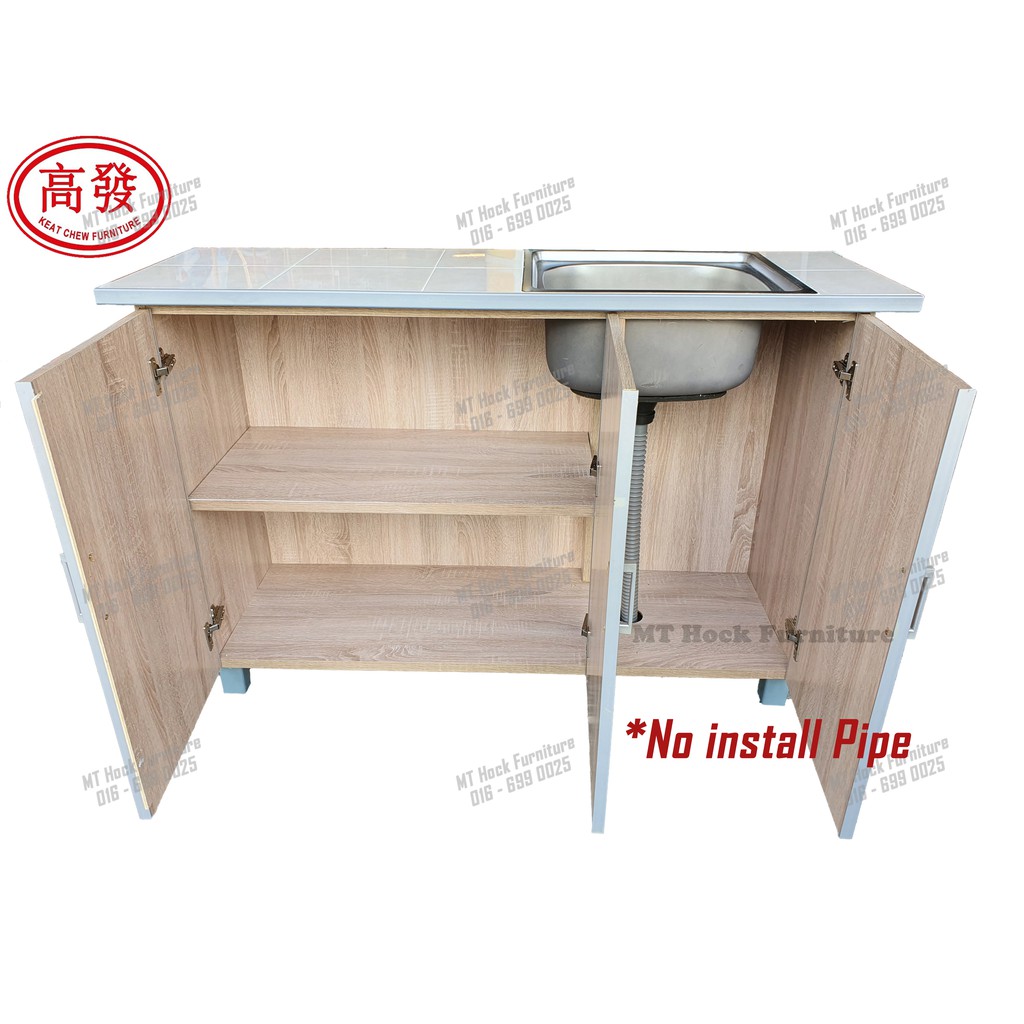 4FT Sink Kitchen Cabinet 3 Door KITCHEN Cabinet Tile ToP with Stainless steel Sink Bowl