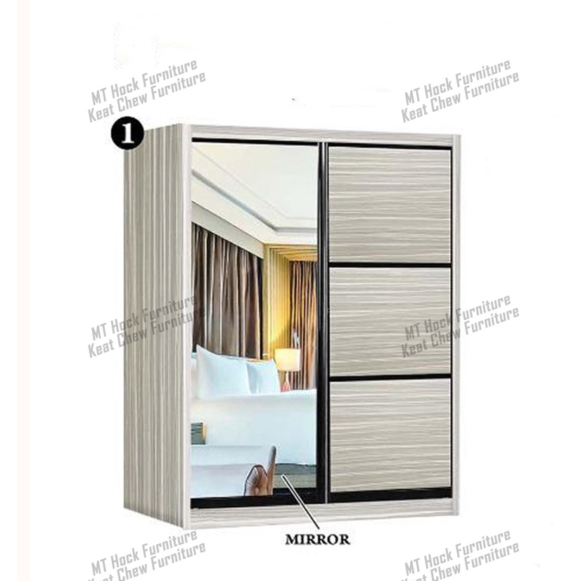 4FT x 6FT Wardrobe Sliding Door Cabinet Almari Baju Almari Sliding Anti-Jump Wardrobe (Cream Color)