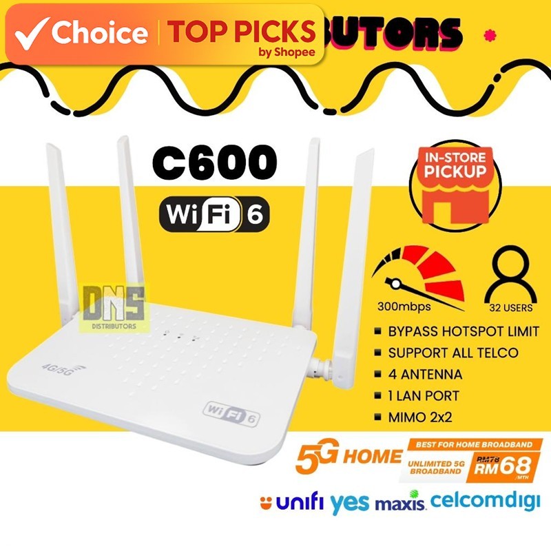 4G CPE Home Router C600 WiFi6 Modem Unlimited WiFi Internet Support All Operator