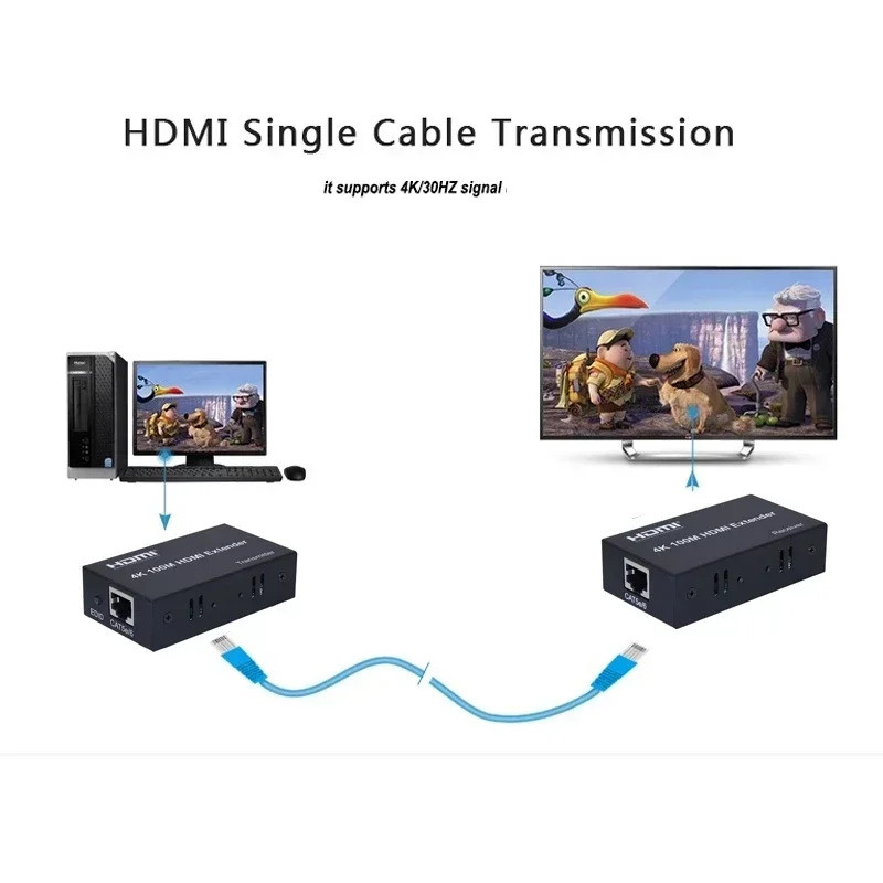 4K 100m HDMI Extender Via Cat5e Cat6 Rj45 Cable HDMI To Ethernet Transmitter and Receiver for PS4 Camera PC To TV Monitor 60m