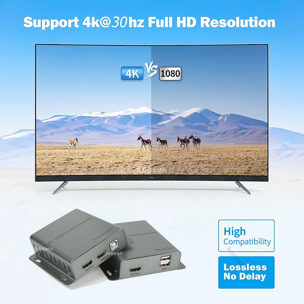 4K 120M HDMI USB KVM Extender Via Cat5e/6 Rj45 Cable 1080P 60M HDMI to RJ45 with USB Extendor Transmitter Support Mouse Keyboard