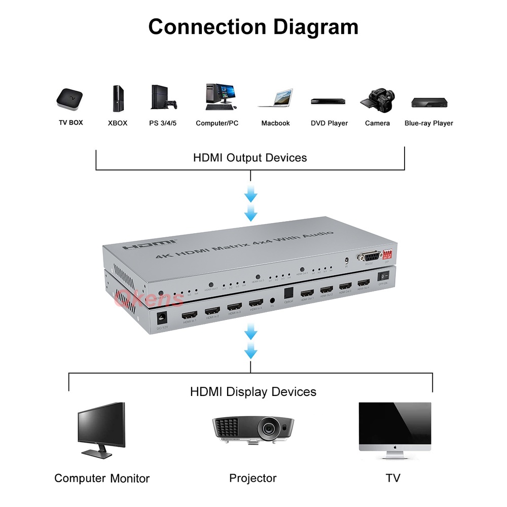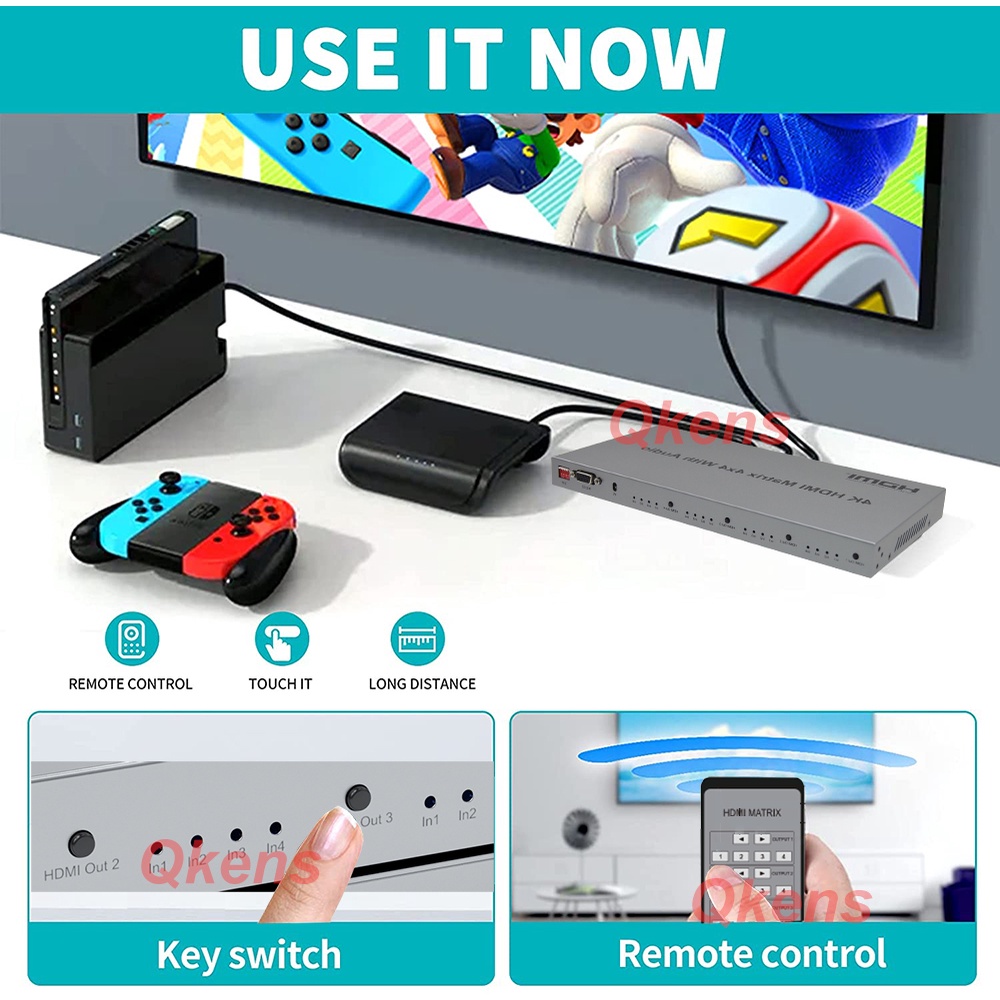 4K 4x4 HDMI Matrix Switch 1080p 60hz 4 Port HDMI Switcher Splitter 4 In 4 Out Video Converter with Audio Split for PS4 PS5 Xbox DVD STB Camera Notebook PC To Projector TV Monitor