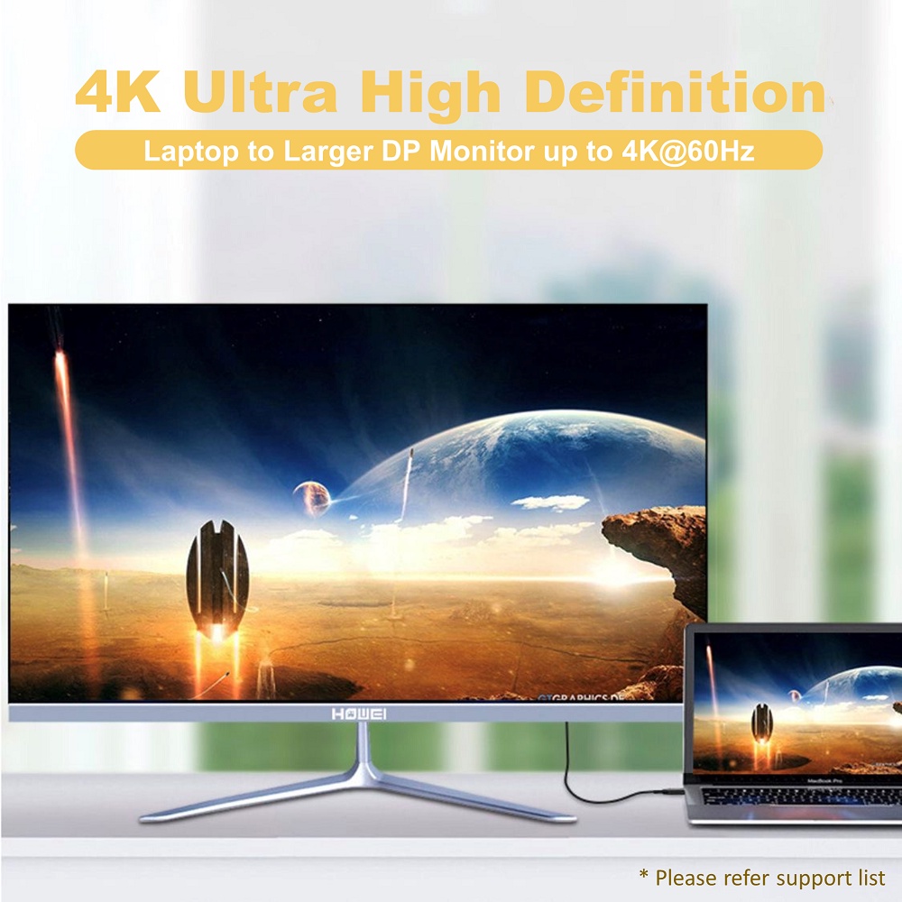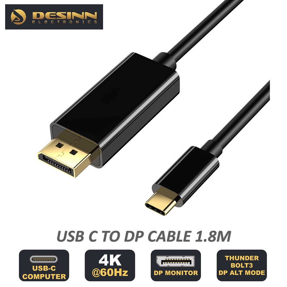4K@60Hz USB C to DisplayPort Cable 1.8m for Home Office Type C to DP Thunderbolt 3 Compatible with laptop Phone monitor