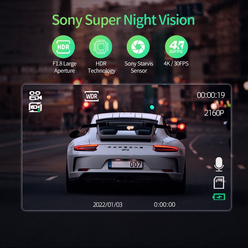 4K Dashcam Dvr WIFI Super Capacitor 3840*2160P Dash Camera GPS Tracker Recorder Night Vision 24H Park Monitor