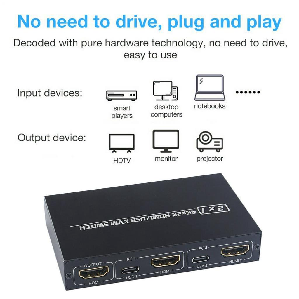 4K HD Mini HDMI Switch Switcher 2X1 Port KVM USB HDMI Switch Splitter Box Selector For Computer Keyboard Mouse Printer