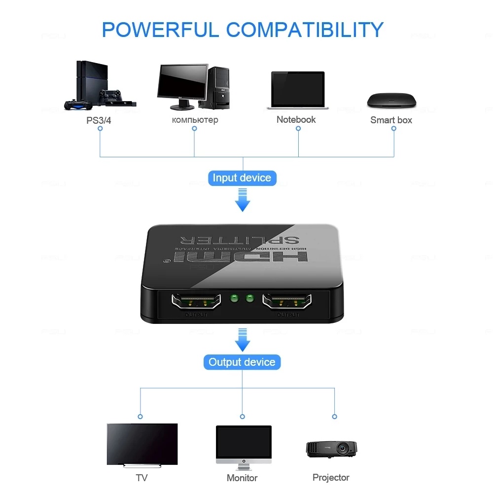 4K HDMI Splitter 1x2 HDMI Video Splitter 1 in 2 out HDMI distributor Amplifier Switch Dual Display for PS4 Apple HDTV XBox PS5
