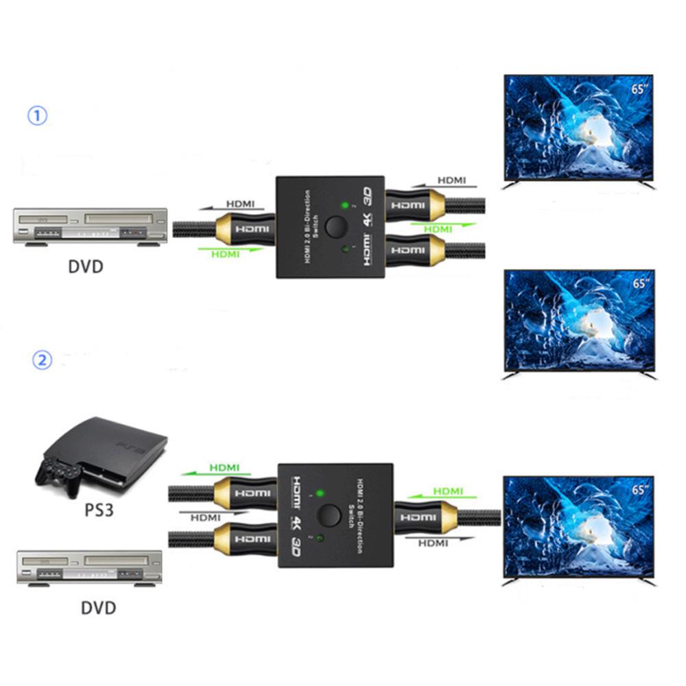 4K HDTV Switch 2 Ports Bi-directional 1x2 / 2x1 HDTV Switcher Splitter Supports Ultra HD 4K 1080P 3D HDR HDCP