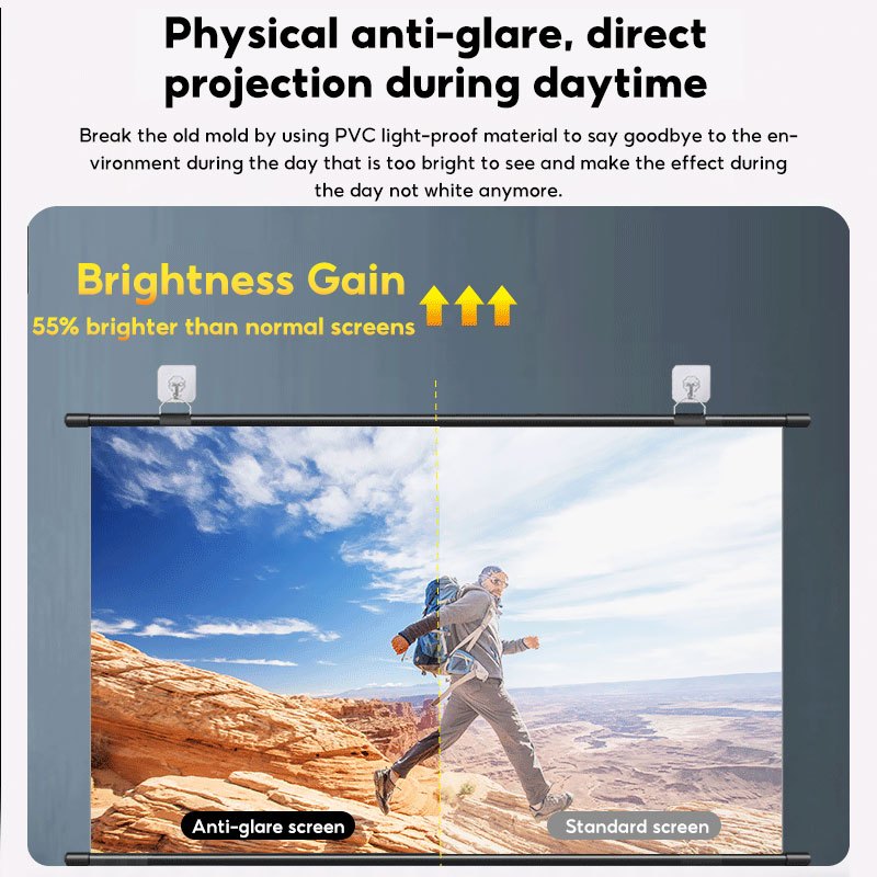 4K Portable Folding Anti-glare Projector Screen Roll-up Storage Projector Screen with Projector Triangle Bracket