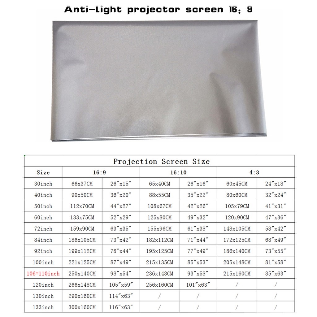 4K Projector Screen Wall Anti Light 60-130 Inch Portable Foldable Kain Curtain Skrin Layar Projektor for TV Home Theater