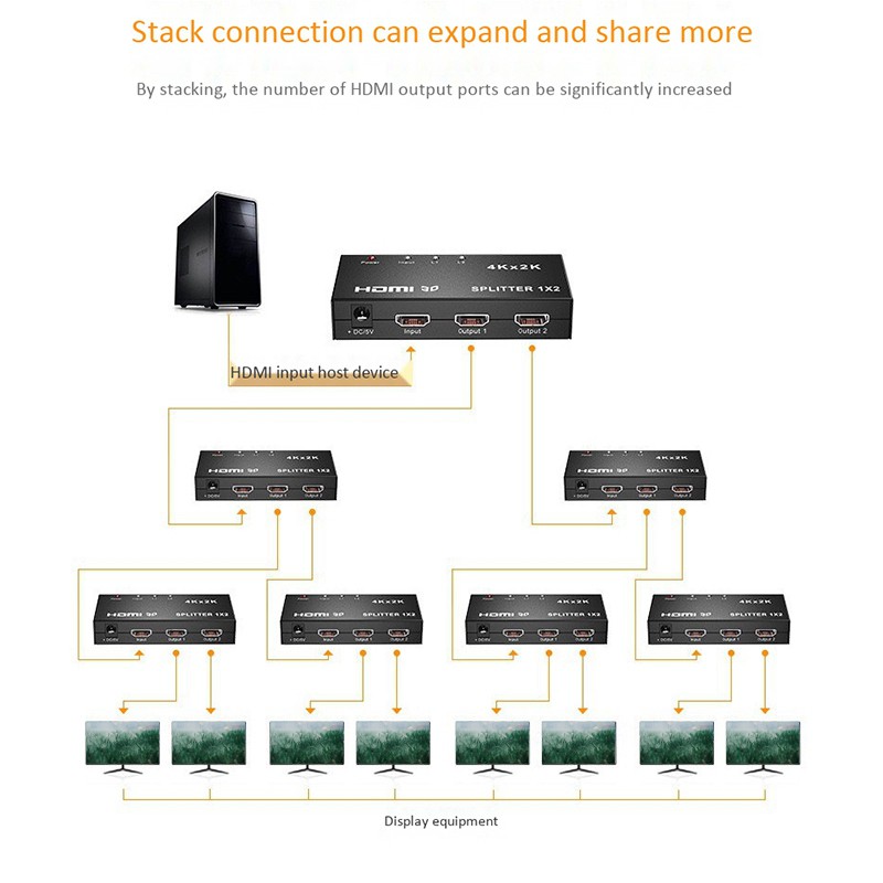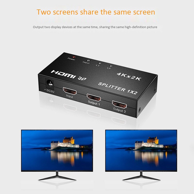4Kx2K 3D 1X2 HDTV Splitter By 1Port To2 HDTV Display Duplicate/Mirror USB Powered Splitter for PS5 (One to Two Outputs)