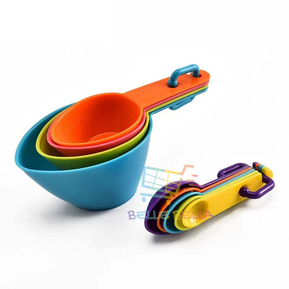 4PCS COLORFUL MEASURING TEASPOON TABLESPOON SPOON 5PCS MEASURE FLOUR SUGAR LIQUID MILK CUP WITH MARKING (RANDOM COLOUR)