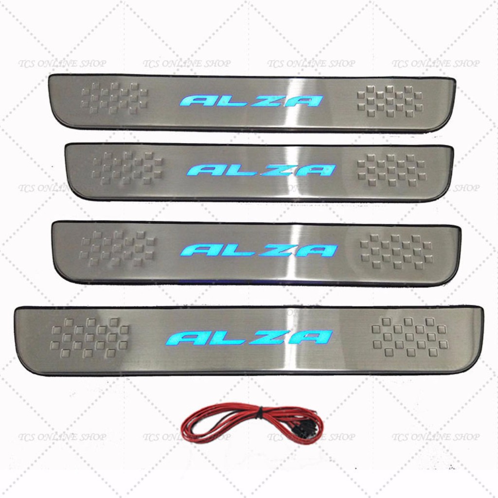 4PCS Perodua ALZA Side Steel Plate/Door Side Step With Led Blue