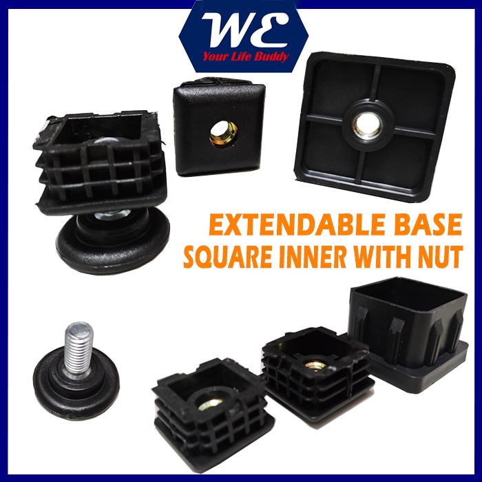 4PCS/SET Adjustable Foot Plastic Square Pipe Plug Nut / Square Inner Plug with Nut Adjusting Foot Screw Height