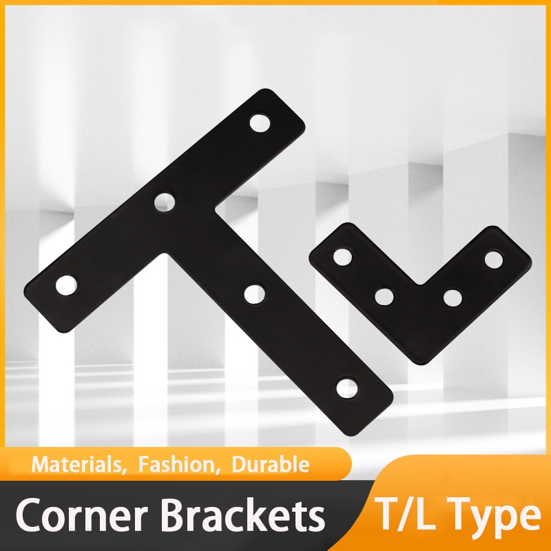 4Pcs Black T/L Shaped Metal Right Angle Bracket Thicken Steel Corner Code Right Angle Codes Home Board Hardware Fittings Connection