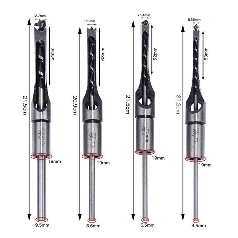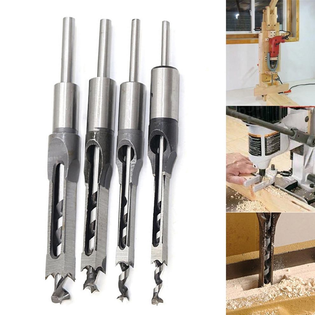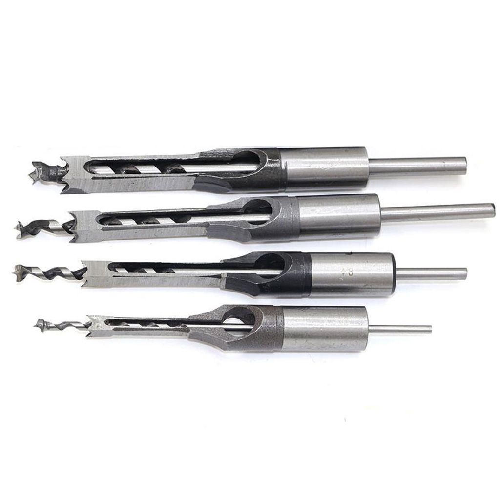4Pcs Woodworking Square Hole Drill Bits Wood Mortising Chisel Set Mortise Chisel Bit Kits Woodworking Hole Saw Sets