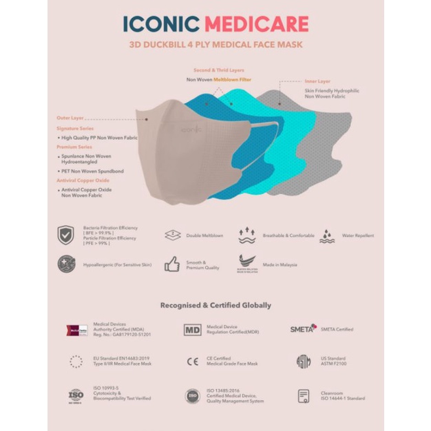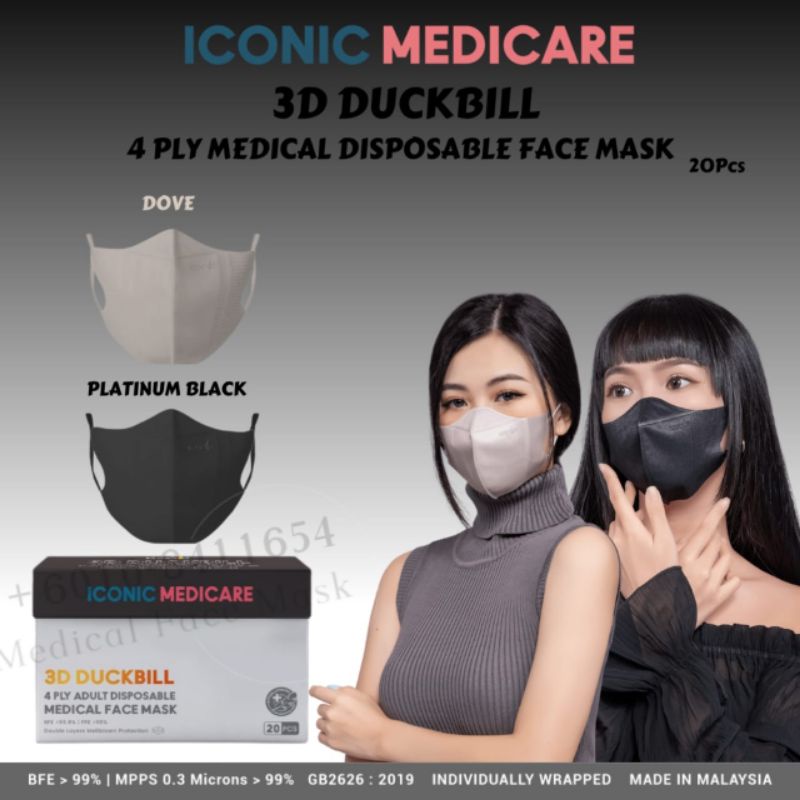 4Ply 3D Duckbill Adult Medical Face Mask / Small Face Cutting 20PCS (Premium Quality) : Two Colors/Per Box