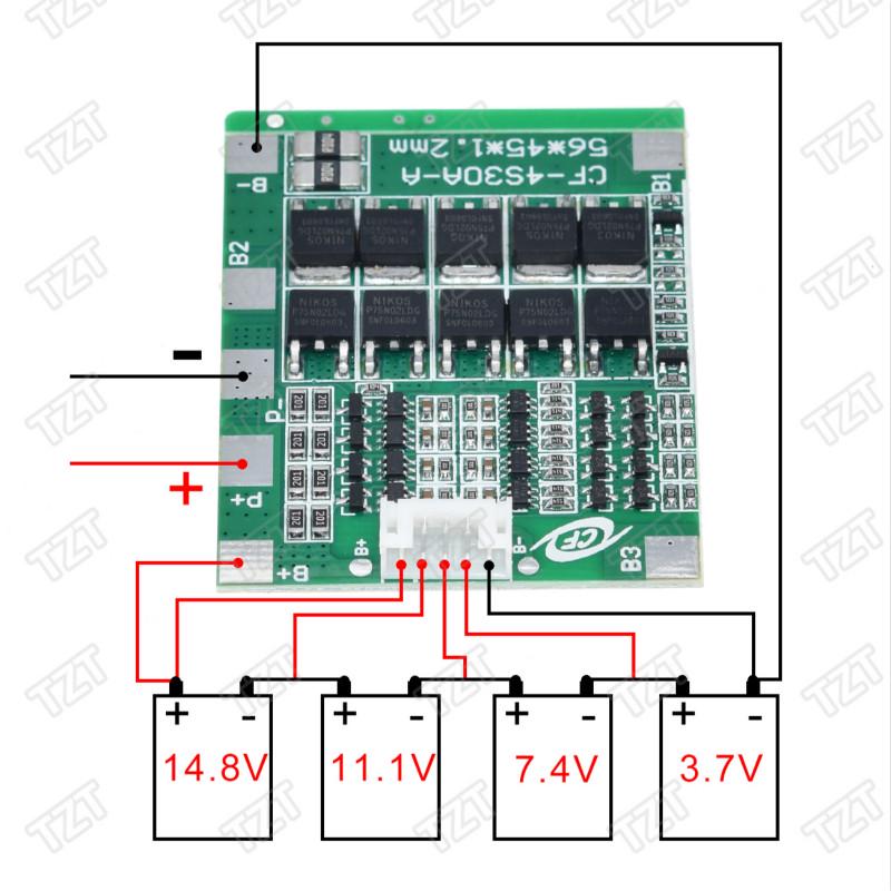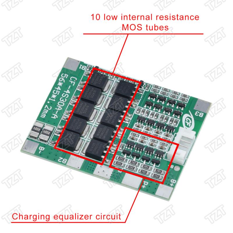 4S 30A 14.8V Li-ion Lithium 18650 Battery BMS Packs PCB Protection Board Balance Integrated Circuits with cable