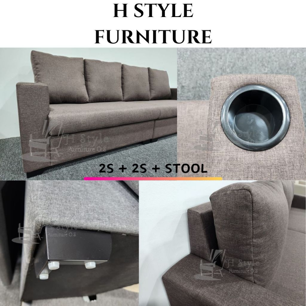 4S + STOOL SOFA SETS - MULTIFUNCTIONAL SOFA | 2S + 2S + STOOL | LIGHT GREY