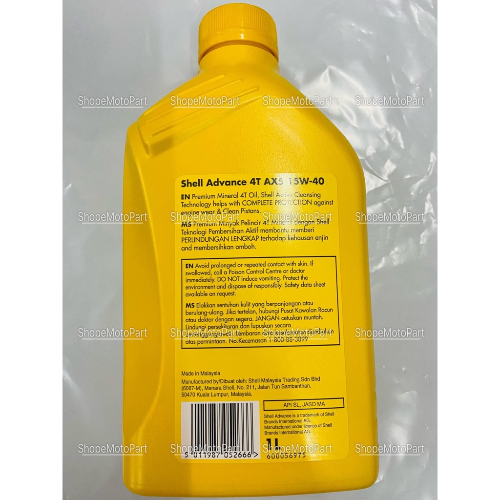 4T SHELL ADVANCE AX5 15W-40 1L API SL JASO MA 100% ORIGINAL MINYAK HITAM